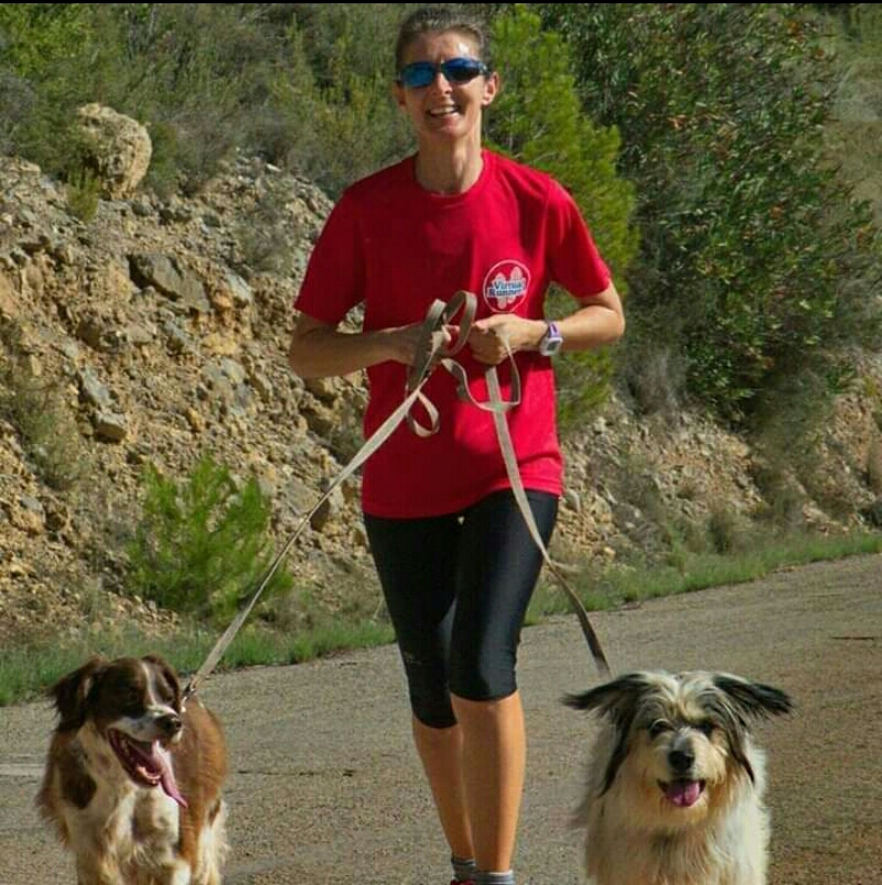 I discovered yoga which helps keep the adhesions flexible and mindfulness. I now have Alan back running with me he had to stop just as I started due to hip pain yet he kept encouraging me when I was struggling with running on my own he suggested I took our dog Buster for company and I suppose protection and when he got too old I took our youngster Pip until Alan rejoined me 2 years ago.